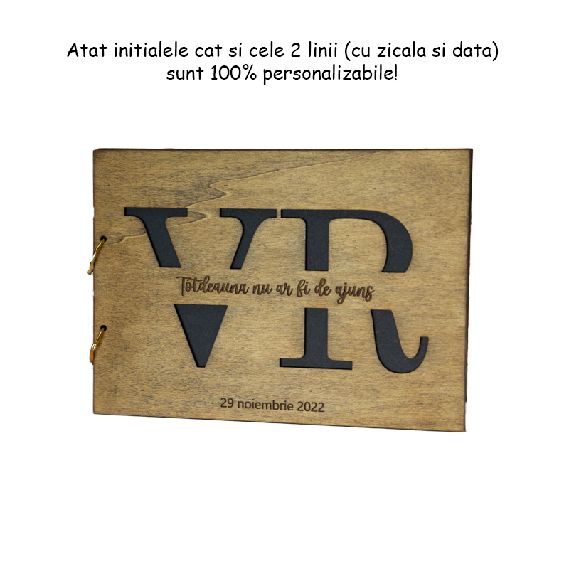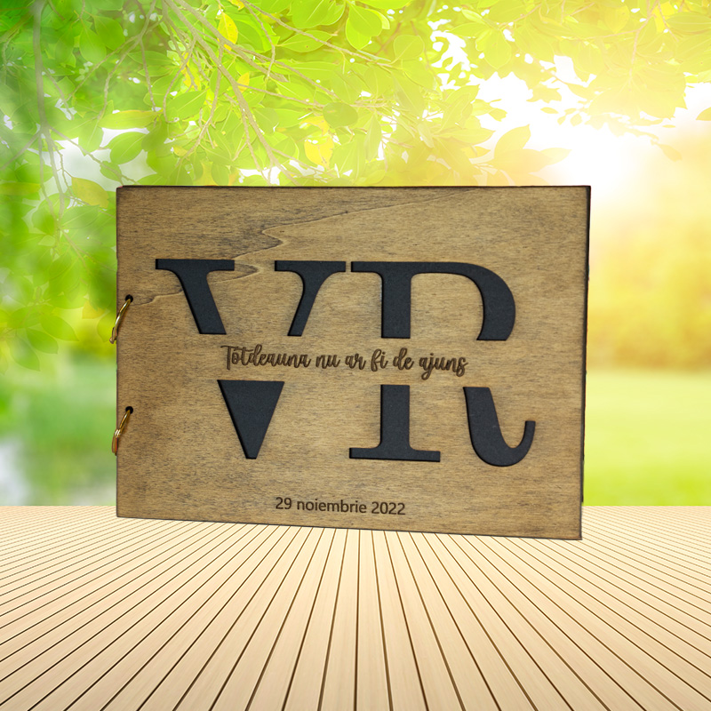 • numele pe care il doresti decupat in coperta principala, pentru a scoate in evidenta acest detaliu unic care te reprezinta pe tine sau care reprezinta persoanele care vor primi acest cadou.