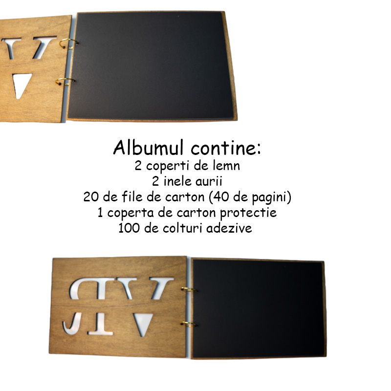 • apoi avem 2 coperti interioare A4 de culoare neagra din carton de calitate superioara , pentru a proteja amintirile cele mai de pret, una la inceput si una la sfarsit